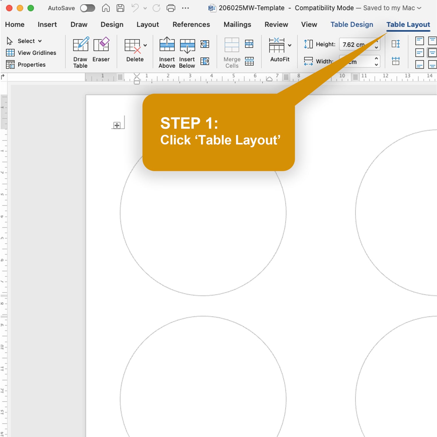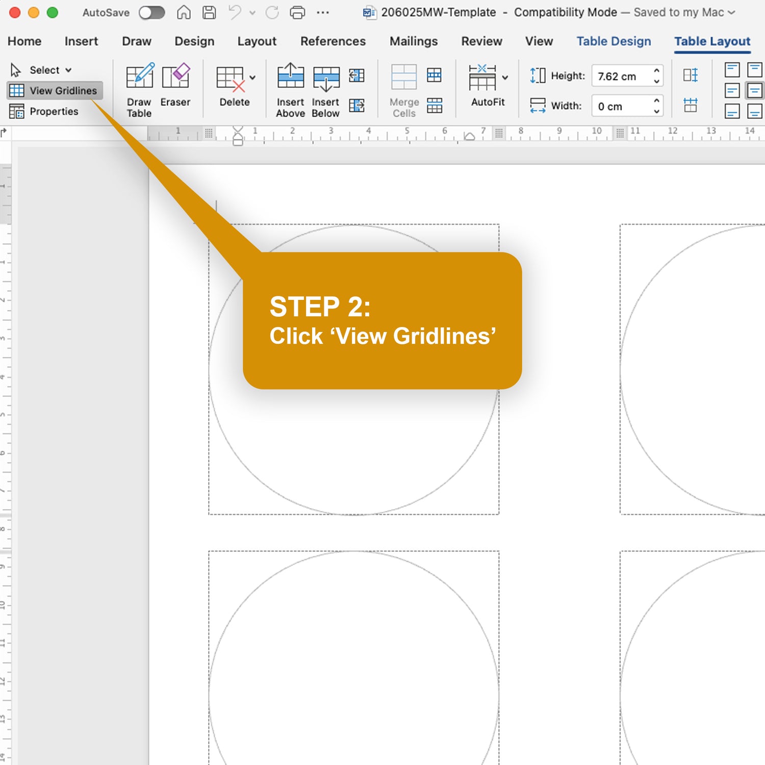 For use in any version of Microsoft Word®. MS Word does not support circles, this template may be squares instead. Your "gridlines" in Microsoft Word® must be turned on to view this template